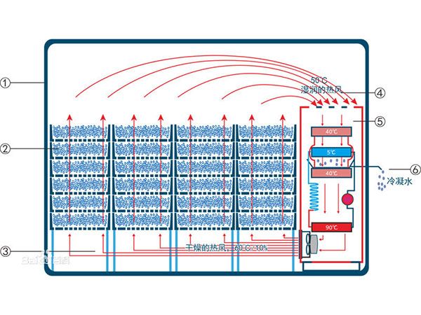 1. 干燥過程排出去的只有水,幾乎沒有能量流失,能量基本******回收,因此效率非常高,是傳統(tǒng)開環(huán)干燥方式的幾倍;