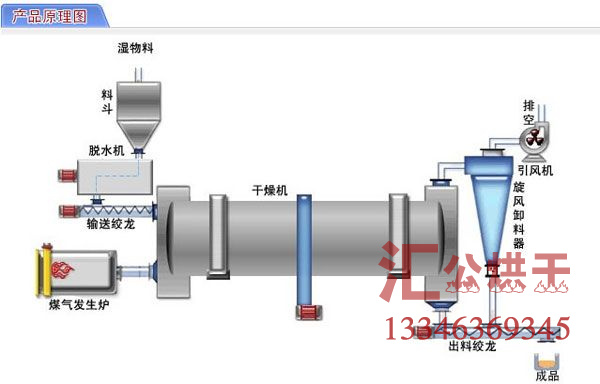 (二)滾筒式烘干機(jī)工作原理: